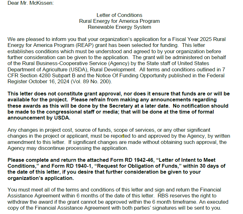 I write REAP grants for a flat-fee with no success fee add-on. We work closely with qualified solar companies (EPCs) and business owners around the country to help them write and submit high quality USDA REAP Grants of all sizes. We are preparing for the July – September 2025 deadline now. The USDA has announced another $600MM per year for this program for the next three years (2025-2027).
